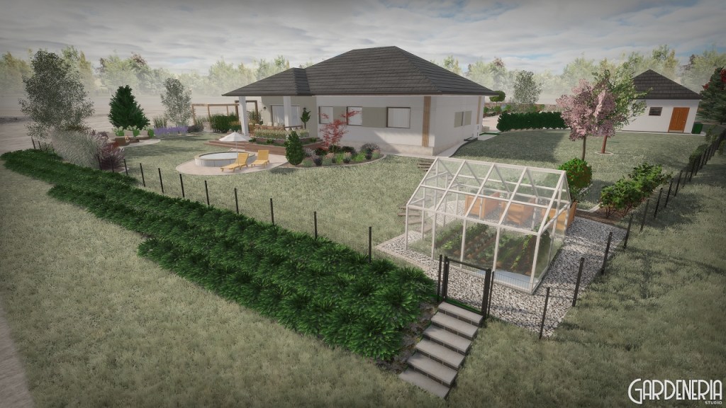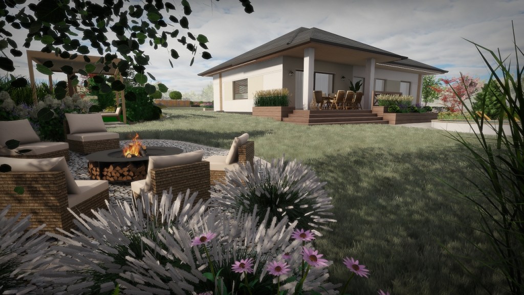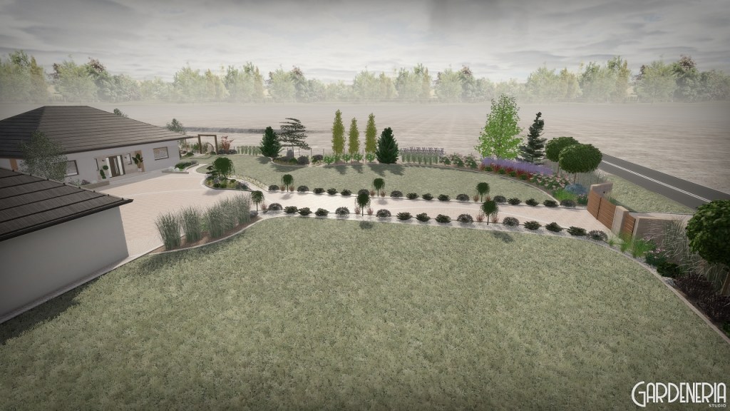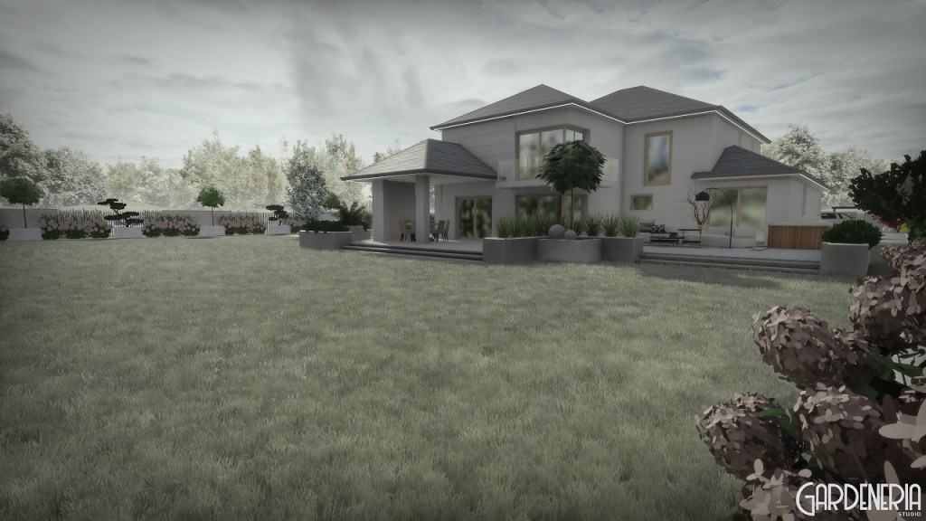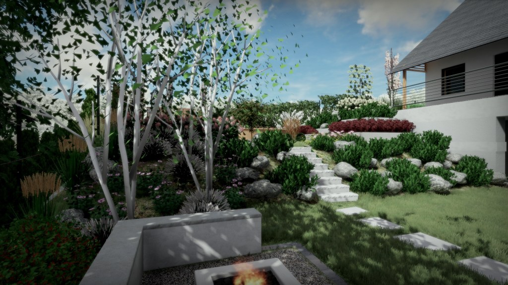 Wizualizacje przedstawiają projekt 45-arowego ogrodu w południowej części polski. Ogród został zaprojektowany w swobodnym i naturalistycznym stylu. W projekcie zaproponowano brzozy pożyteczne w jednopiennych i wielopiennych odmianach. Ponadto dużą rolę odgrywały trawy i rośliny kwitnące. Poza projektem ogrodu przygotowany został projekt elewacji, projekt podjazdu z kostki brukowej i projekt ogrodzenia. Ze względu na dużą powierzchnię działki w projekcie znalazło się miejsce na małą szklarnię i warzywnik.