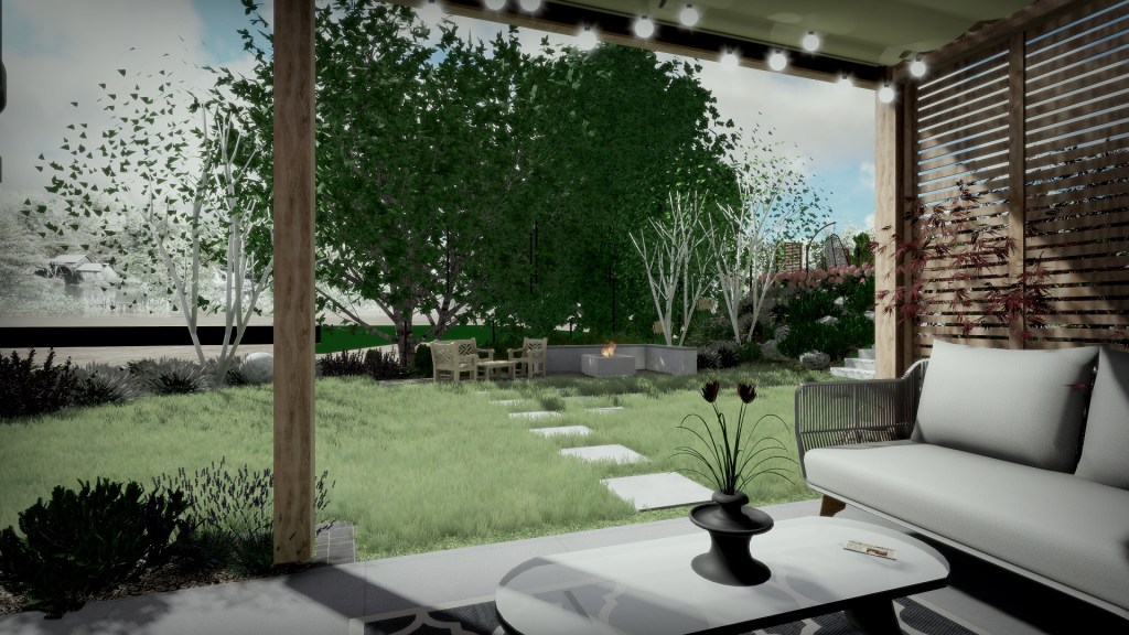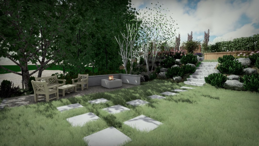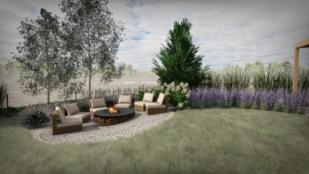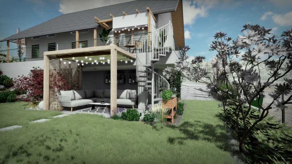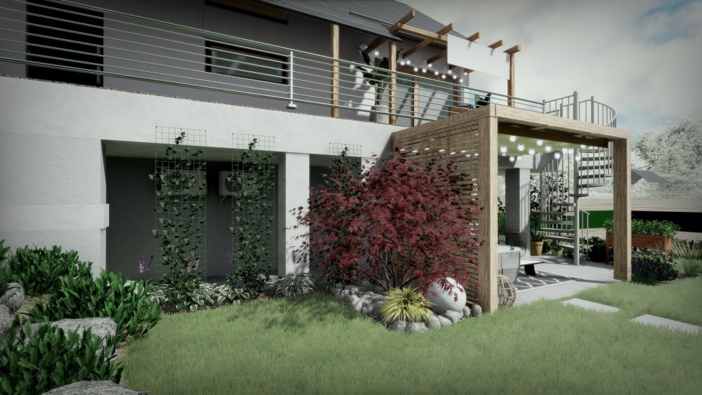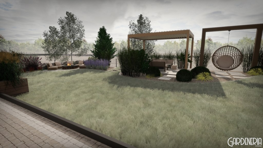 Wizualizacje przedstawiają projekt 45-arowego ogrodu w południowej części polski. Ogród został zaprojektowany w swobodnym i naturalistycznym stylu. W projekcie zaproponowano brzozy pożyteczne w jednopiennych i wielopiennych odmianach. Ponadto dużą rolę odgrywały trawy i rośliny kwitnące. Poza projektem ogrodu przygotowany został projekt elewacji, projekt podjazdu z kostki brukowej i projekt ogrodzenia. Ze względu na dużą powierzchnię działki w projekcie znalazło się miejsce na małą szklarnię i warzywnik.
